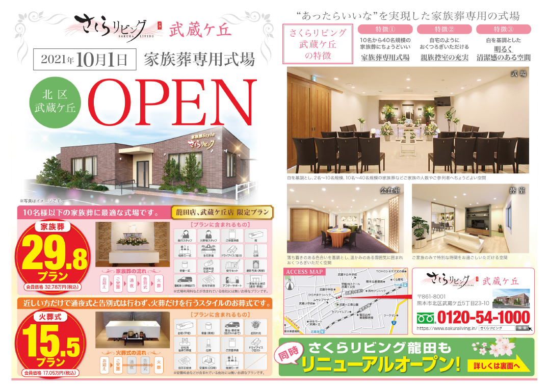 家族葬専用式場「さくらリビング武蔵ケ丘」がOPENしました。